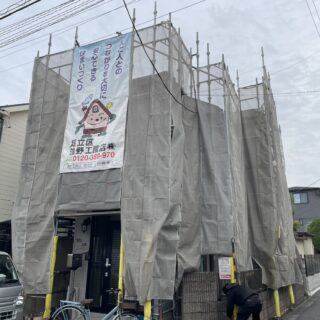 足立区舎人で施工している屋根外壁塗装工事ですが、天気も・・・