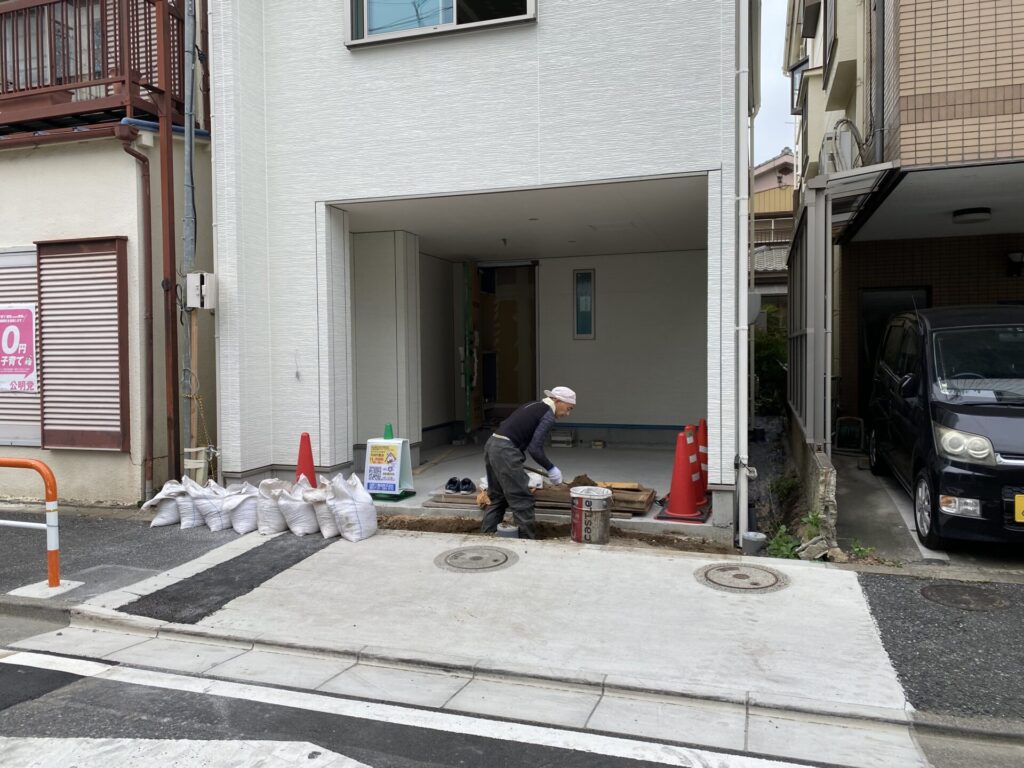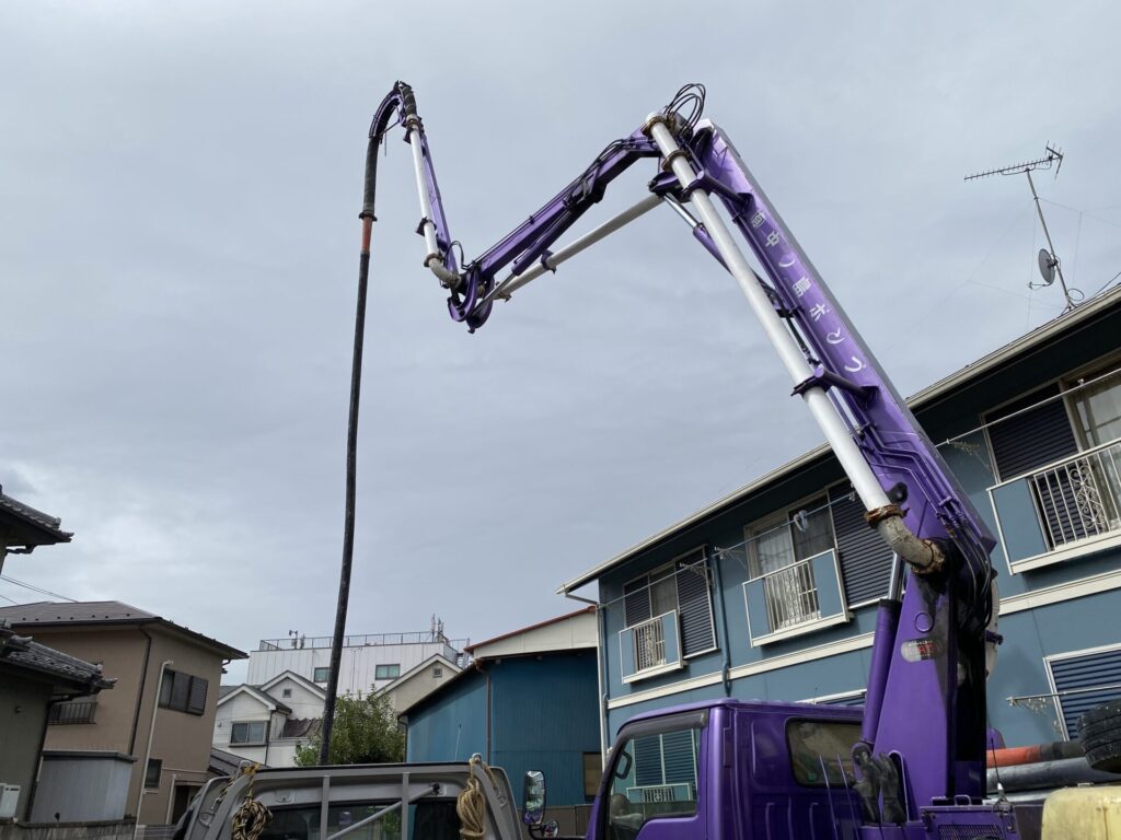 縦長のお宅なのでポンプ車を使ってコンクリートを流しています。