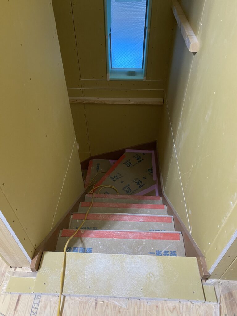 建て替え工事K様邸は階段がついて外壁の塗装工事中です。