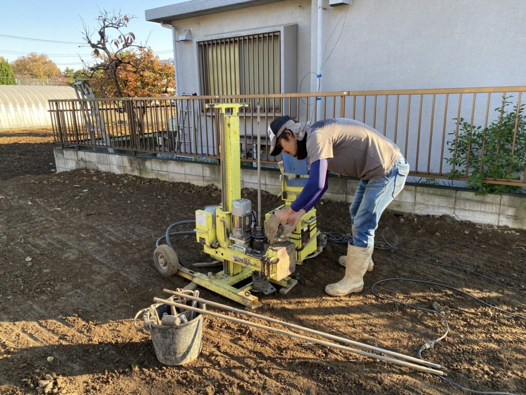 足立区のA様邸建て替え工事は地盤調査をしています。