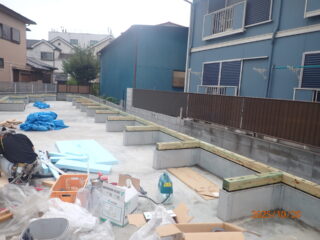 足立区本木 建替え工事。足立区注文住宅建替え&リフォーム工務店あなたの担当がいる浅野工務店の藤田です。昨日、土台敷き工事完了しました。朝方は、小雨が降っていましたが、雨が上がるのを待って作業開始しました。予定よりも時間がかかりあたりは暗くなっていましたが、シート養生まで無事、完了しました。今週末、上棟予定です。・・・