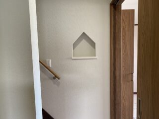 良い陽気ですね。今日は足立区舎人の建て替え工事2軒回って来ました。M様邸は工事も終盤となりクロス屋さんが入っています。かわいいニッチ棚があります。S様の奥様はフィギュアなどの趣味をお持ちです。建替えする前のお宅にもたくさん飾ってありましたが新しい・・・