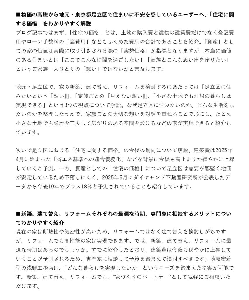 記事では、足立区で住まいを検討する際の考え方や、今後の価格動向にも触れ、新築・建て替え・リフォームそれぞれの特徴や選び方を紹介。専門家に相談しながら、自分たちに合った住まいづくりを進める大切さを伝えています。