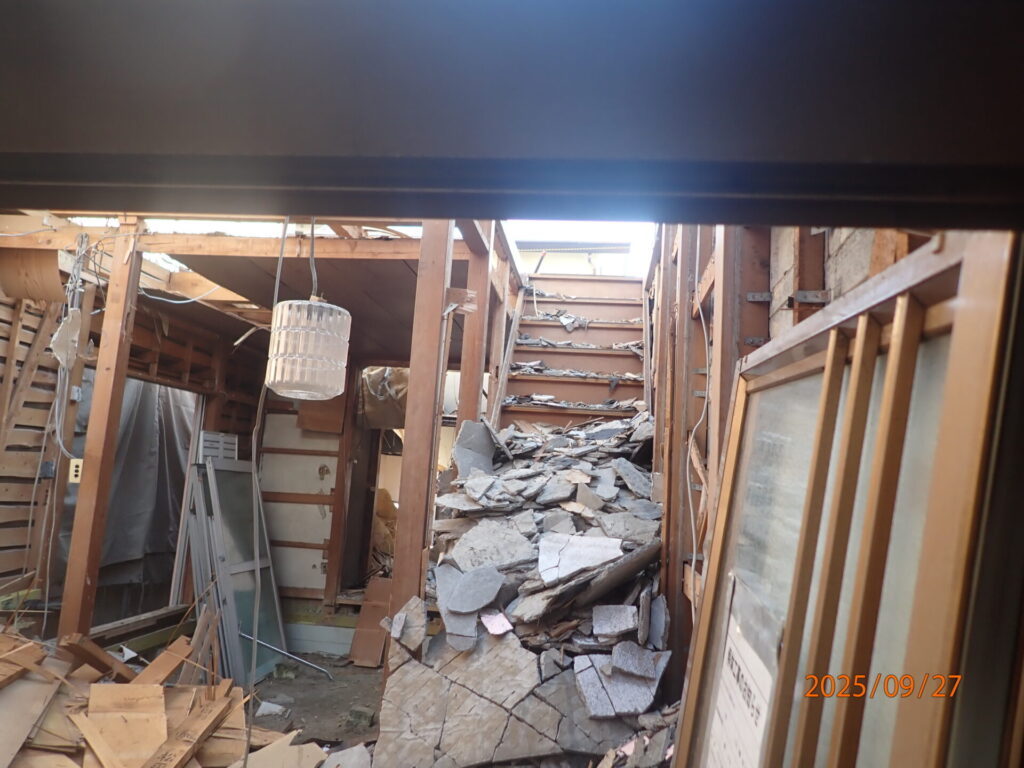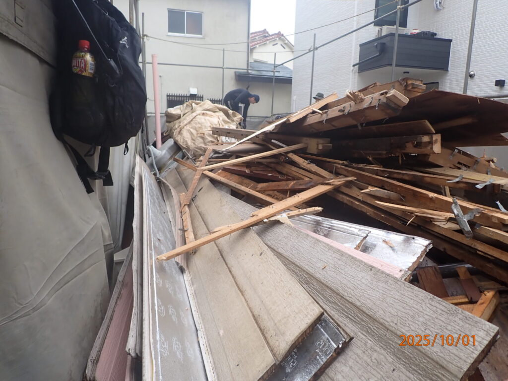 足立区小台 建替え工事。足立区注文住宅建替え&リフォーム工務店あなたの担当がいる浅野工務店の藤田です。弊社のホームページを見てお問い合わせしていただいたのがご縁で、今回、建て替えのご依頼をいただきました。先月の半ばから解体工事が始まり,隣地が近いため、建物部分は手作業で解体を行っています。今週末から、重機を使って基礎部分の解体を行う予定です。