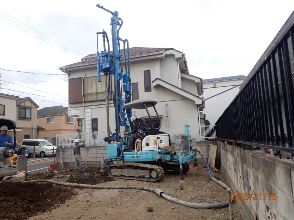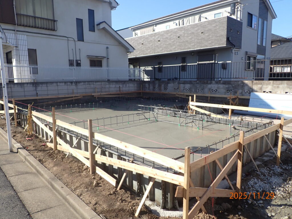 足立区舎人 建替え工事。足立区注文住宅建替え&リフォーム工務店あなたの担当がいる浅野工務店の藤田です。地盤調査の結果、地盤の強度不足のため地盤改良工事を行いました。先々週から基礎工事も着工しました。このところ天気もよく順調に配筋工事まで完了して、先週末からコンクリート打ち工事中です。今月中旬、上棟予定です。