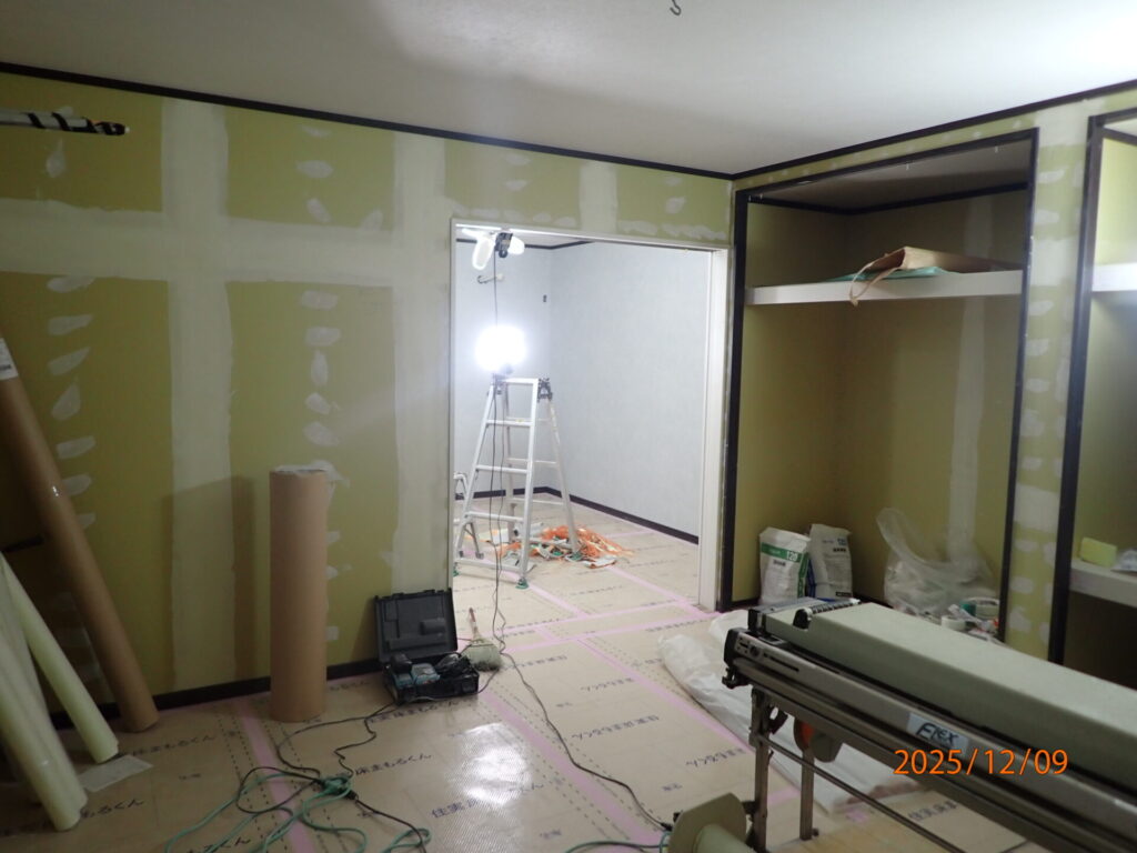 足立区本木 建替え工事。足立区注文住宅建替え&リフォーム工務店あなたの担当がいる浅野工務店の藤田です。1階の倉庫部分は、大工工事・クロス張り工事まで完了し、2階住居部分はクロス張り工事中です。外部は、サイディング張り工事・樋工事も完了して、今週、足場撤去予定です。11月・12月と雨の日が少ないので、外部工事も予定通り順調です。