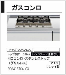 特徴的なコンロで、グリルなしのコンロをお選びいただきました。