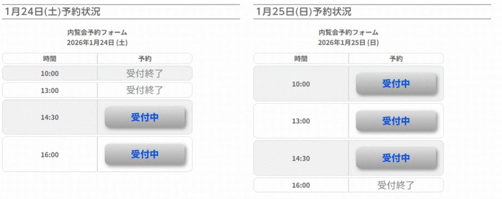 足立区|工務店|予約制内覧会、予約状況