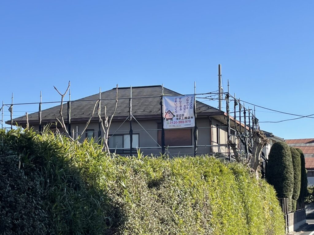 足立区入谷で屋根外壁工事をやらせていただいております。
