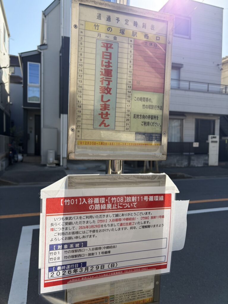 今回は竹の塚行きのバスが廃線となります。