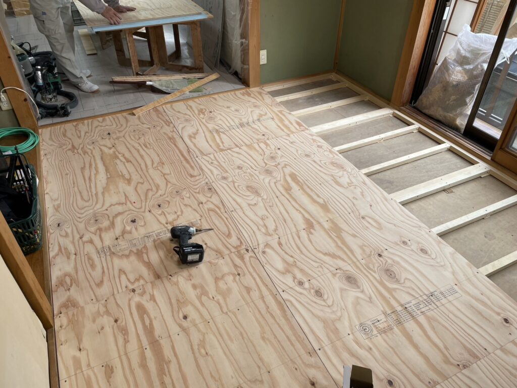 畳をあげて、フローリング用の下地を組んでからフローリングで仕上げます。