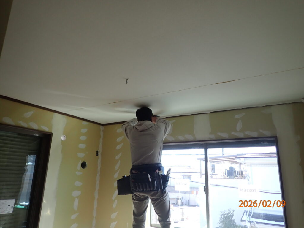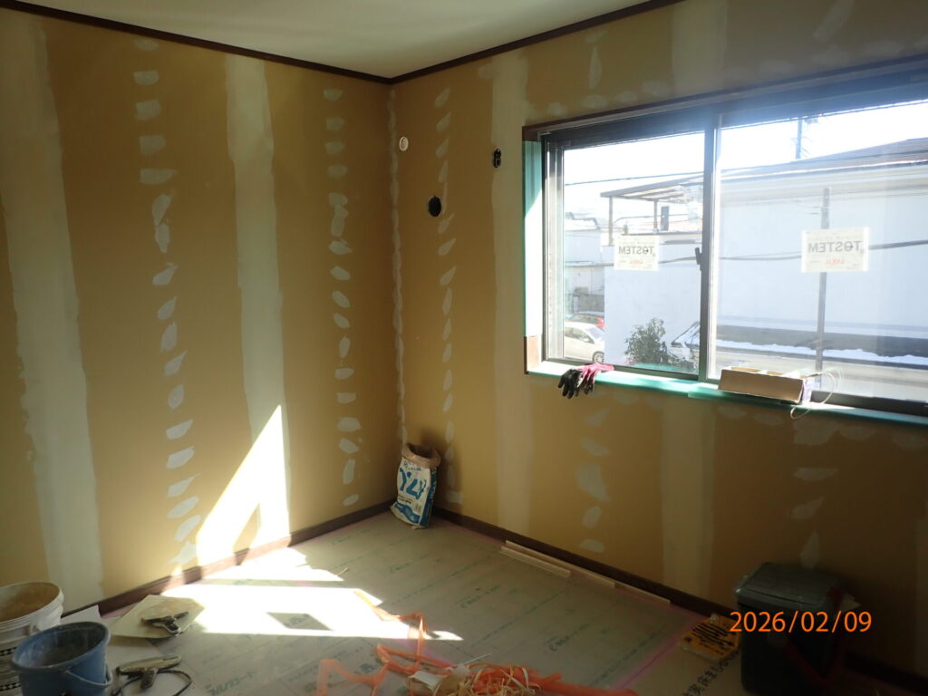 内部は、大工工事、完了間近で、2階からクロス張り工事も始まっています。